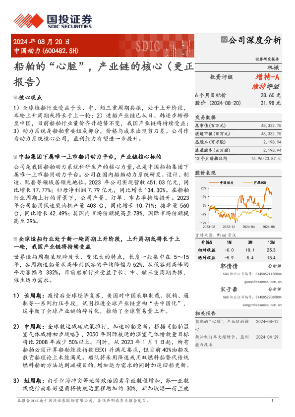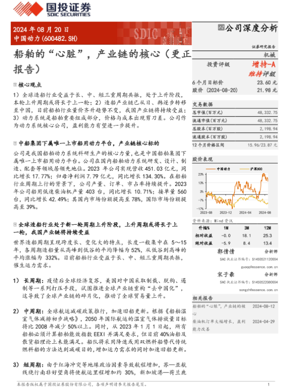 【国投证券】【20240820】中国动力(600482)船舶的“心脏”,产业链的核心(更正报告)-29页