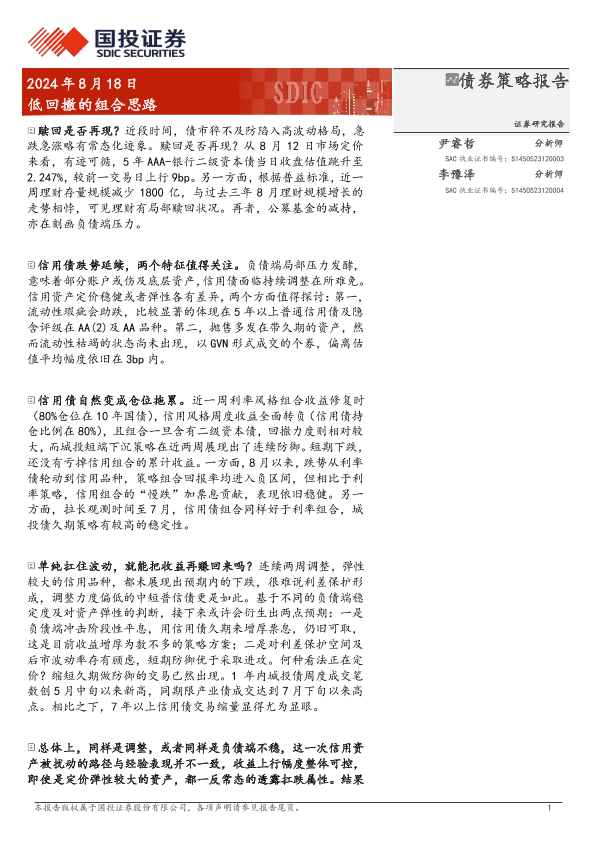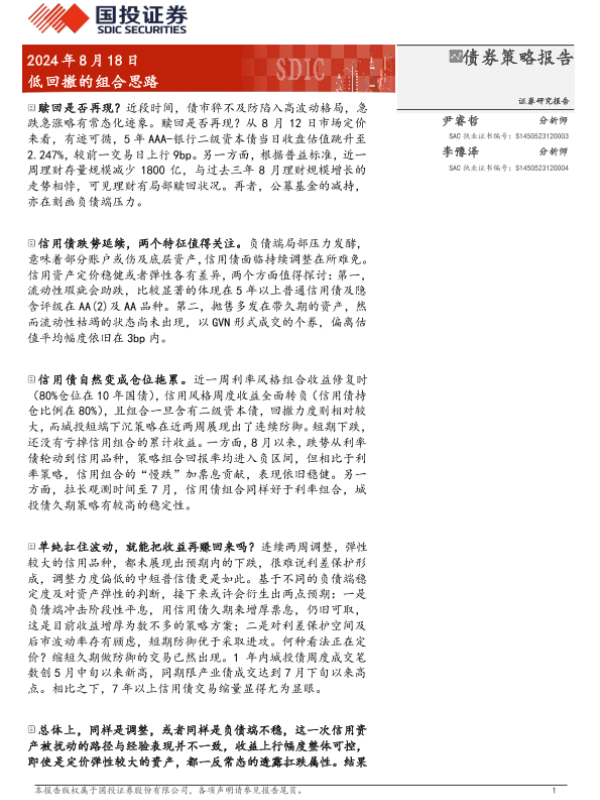 【国投证券】【20240818】债券策略报告:低回撤的组合思路-13页
