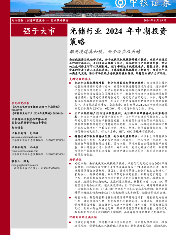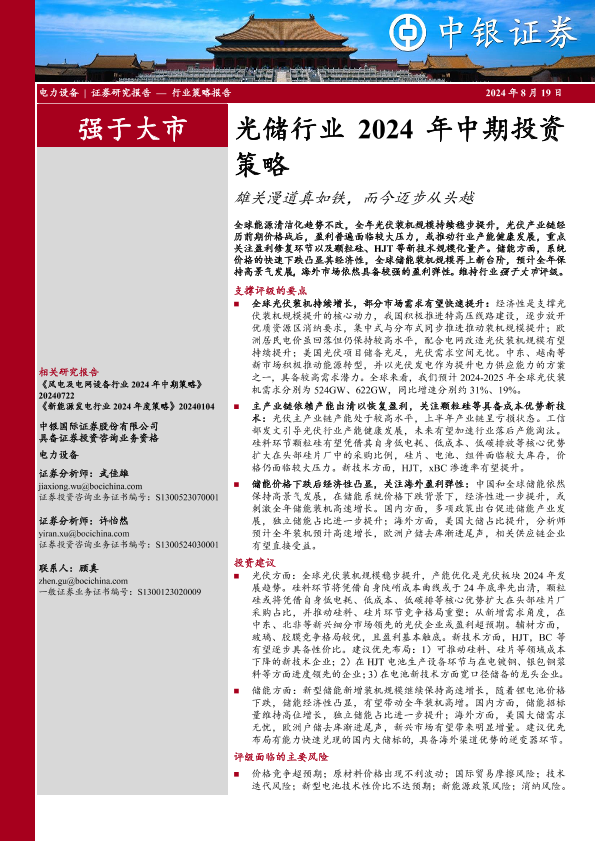 【中银证券】【20240819】光储行业2024年中期投资策略:雄关漫道真如铁,而今迈步从头越-40页