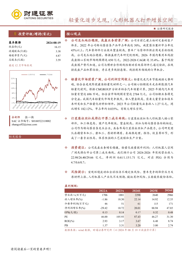 【财通证券】【20240820】北特科技(603009)轻量化逐步兑现,人形机器人打开增长空间-33页