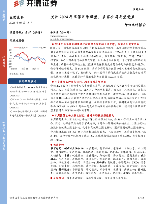【开源证券】【20240818】医药生物行业点评报告:关注2024年医保目录调整,多家公司有望受益-12页