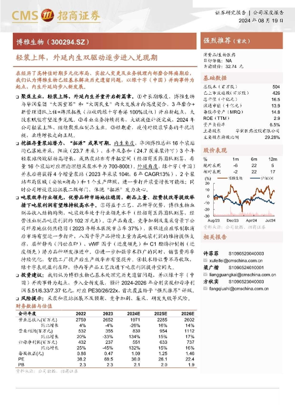 【海通证券】【20240819】博雅生物(300294)轻装上阵,外延内生双驱动逐步进入兑现期-18页