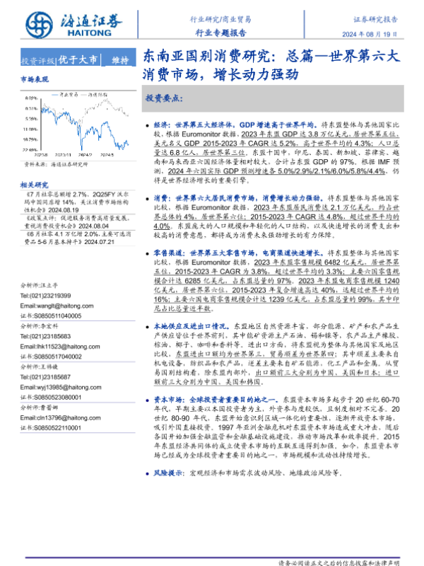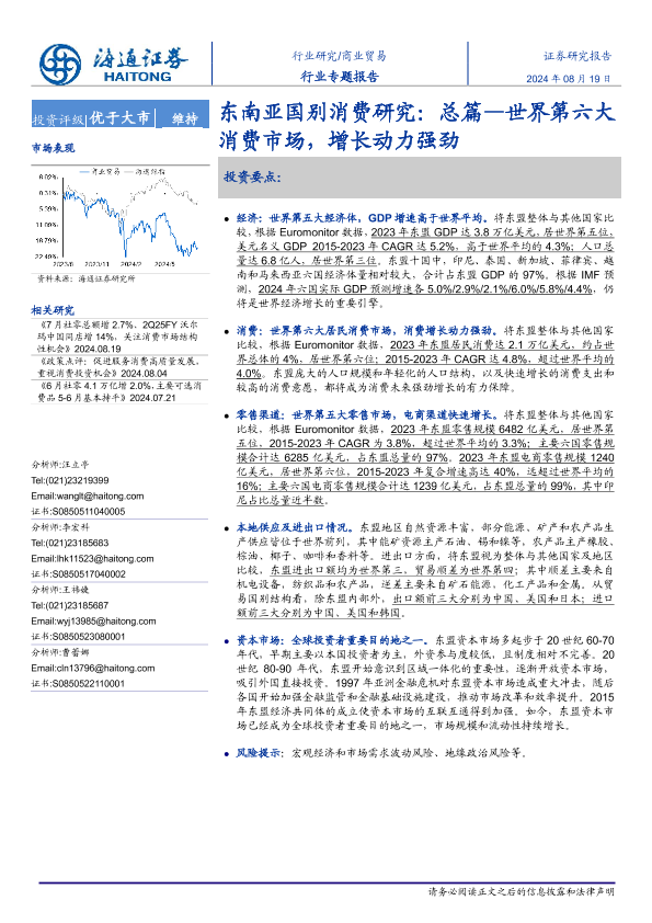 【海通证券】【20240819】商业贸易行业东南亚国别消费研究:总篇—世界第六大消费市场,增长动力强劲-23页