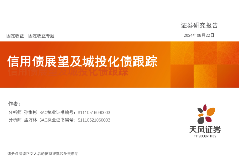 【天风证券】【20240822】固定收益专题:信用债展望及城投化债跟踪-45页