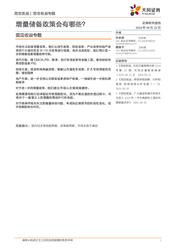 【天风证券】【20240822】固定收益专题:增量储备政策会有哪些?-22页