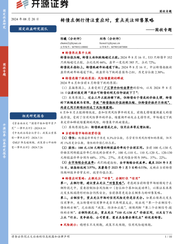 【开源证券】【20240820】固收专题:转债左侧行情注重应对,重点关注回售策略-10页