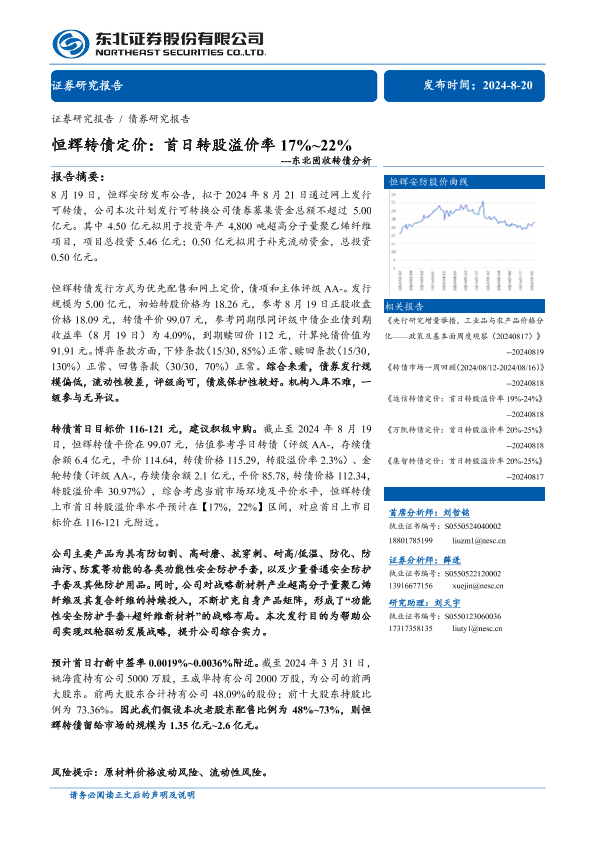 【东北证券】【20240820】固收转债分析-恒辉转债定价:首日转股溢价率17%~22%-11页
