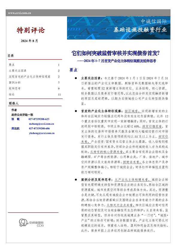 【中诚信国际】【20240819】基础设施投融资行业2024年1-7月首发产业化主体特征观察及延伸思考:它们如何突破监管审核并实现债券首发?-13页