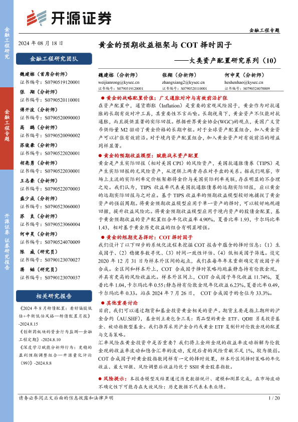 【开源证券】【20240818】大类资产配置研究系列(10):黄金的预期收益框架与COT择时因子-20页
