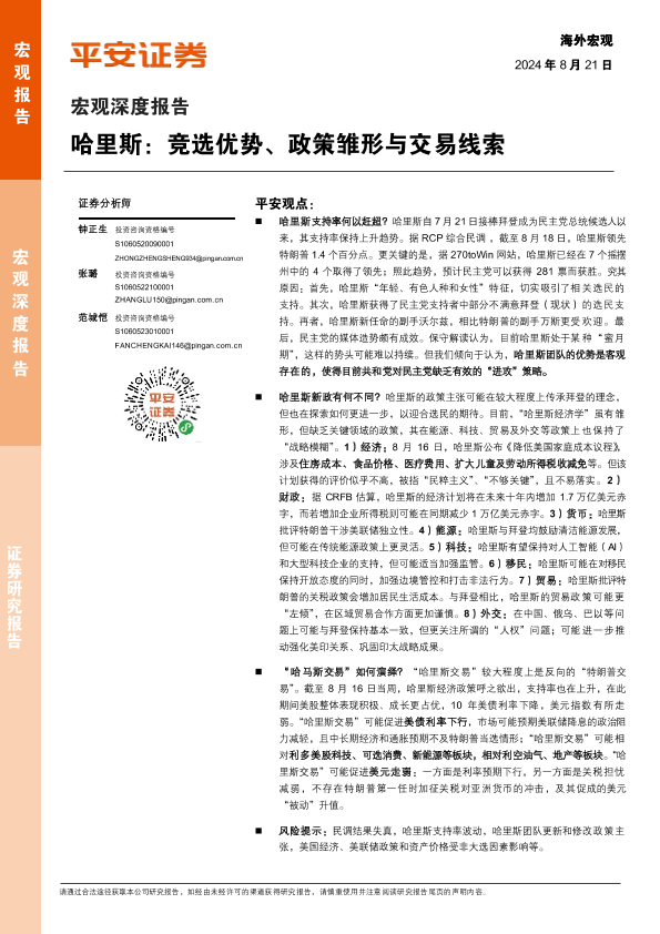 【平安证券】【20240821】哈里斯:竞选优势、政策雏形与交易线索-17页