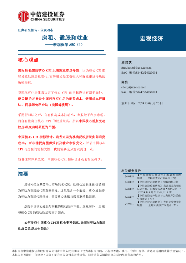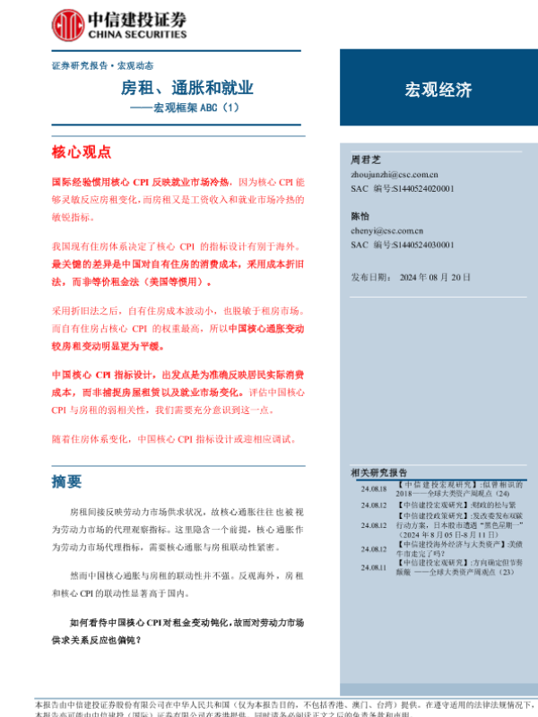 【中信建投证券】【20240820】宏观框架ABC(1):房租、通胀和就业-21页