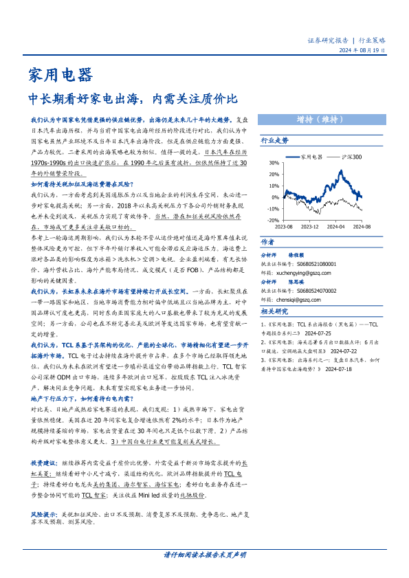【国盛证券】【20240819】家用电器行业策略:中长期看好家电出海,内需关注质价比-65页