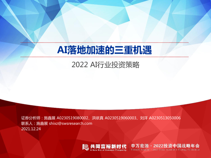 【申万宏源】【20211224】2022AI行业投资策略:AI落地加速的三重机遇-38页
