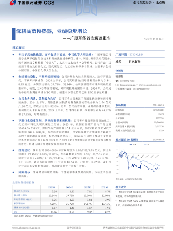 【银河证券】【20240816】广厦环能(873703)首次覆盖报告:深耕高效换热器,业绩稳步增长-16页
