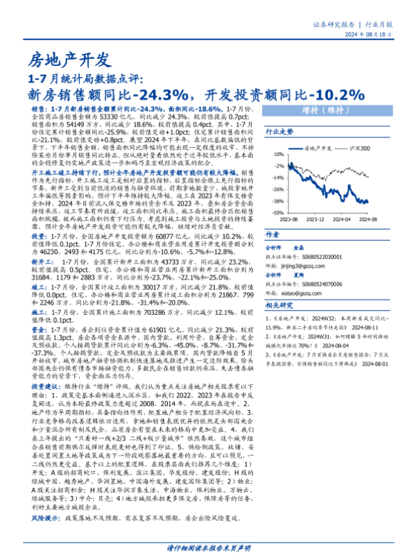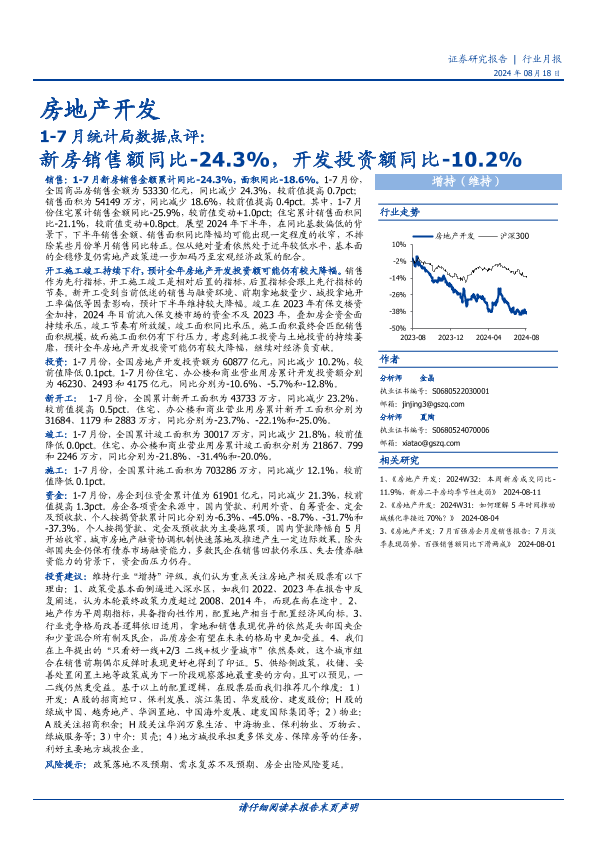 【国盛证券】【20240818】房地产开发行业1-7月统计局数据点评:新房销售额同比-24.3%,开发投资额同比-10.2%-13页
