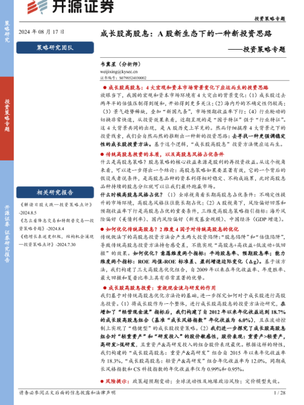 【开源证券】【20240817】成长股高股息:A股新生态下的一种新投资思路-28页