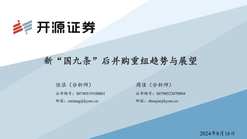 【开源证券】【20240816】新“国九条”后并购重组趋势与展望-30页