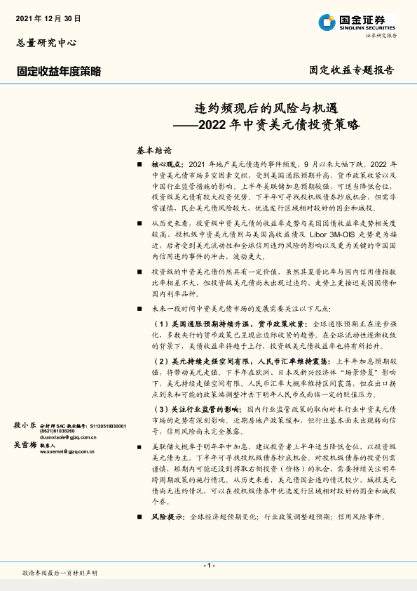 【国金证券】【20211230】2022年中资美元债投资策略:违约频现后的风险与机遇-18页
