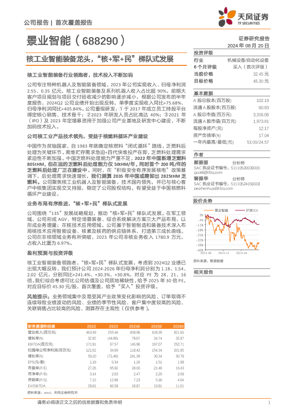 【天风证券】【20240820】景业智能(688290)核工业智能装备龙头,“核+军+民”梯队式发展-19页