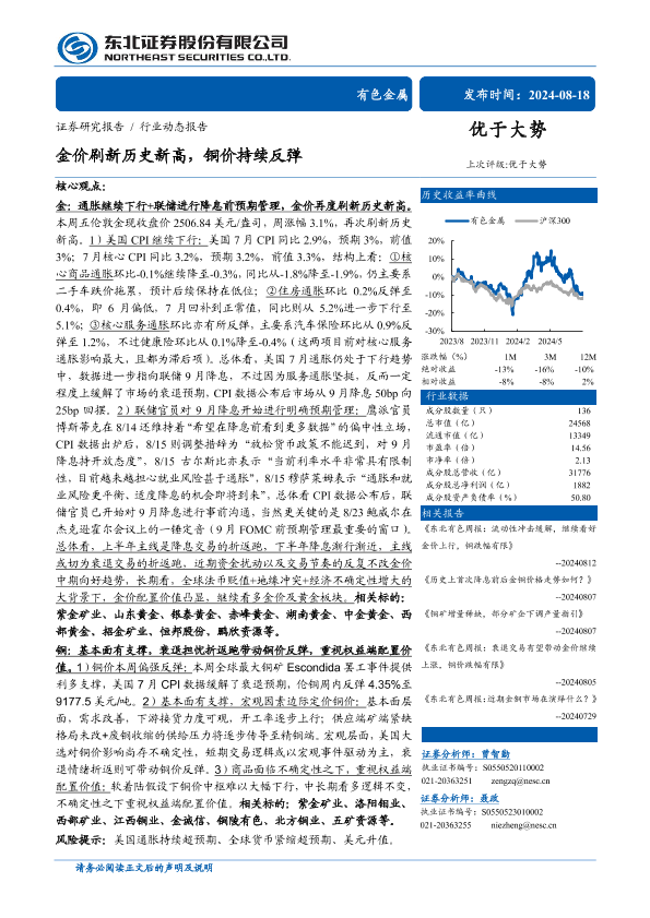 【东北证券】【20240818】金价刷新历史新高,铜价持续反弹-25页