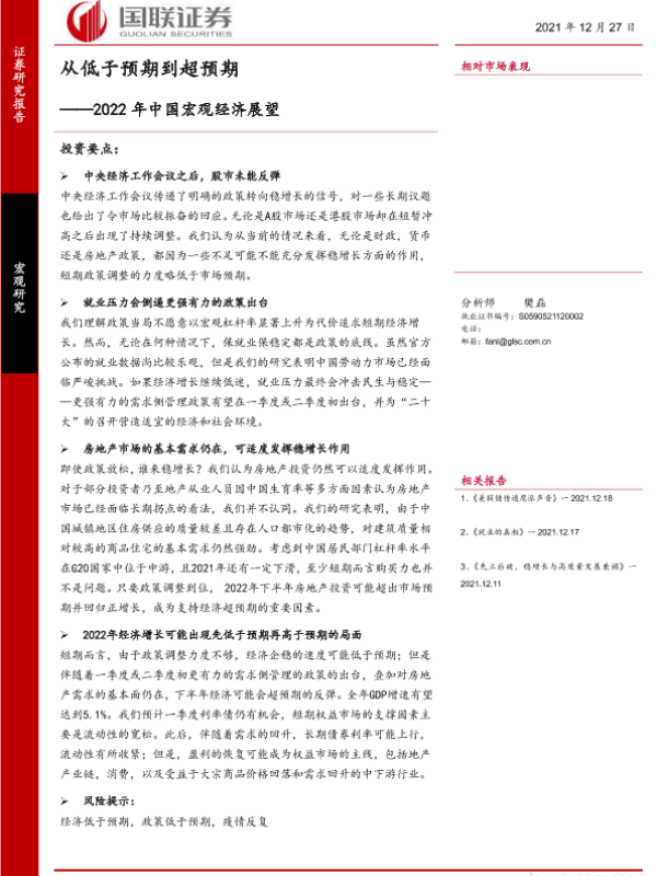 【国联证券】【20211227】2022年中国宏观经济展望:从低于预期到超预期-29页