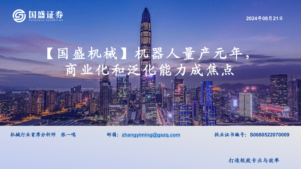 【国盛证券】【20240821】机械行业:机器人量产元年,商业化和泛化能力成焦点-18页