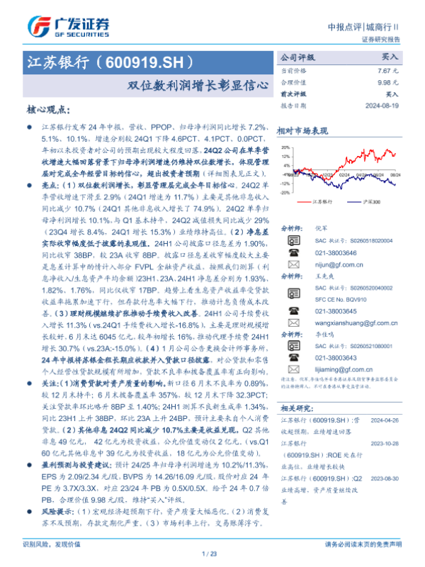 【广发证券】【20240819】江苏银行(600919)双位数利润增长彰显信心-23页
