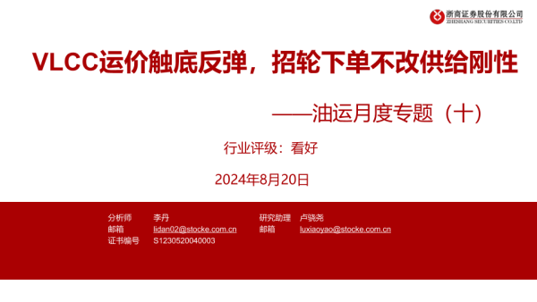 【浙商证券】【20240820】油运行业月度专题(十):VLCC运价触底反弹,招轮下单不改供给刚性-35页