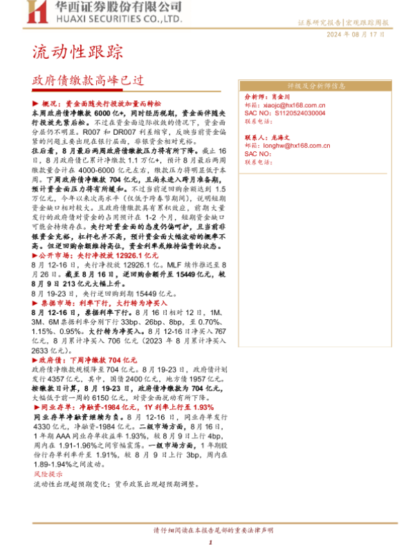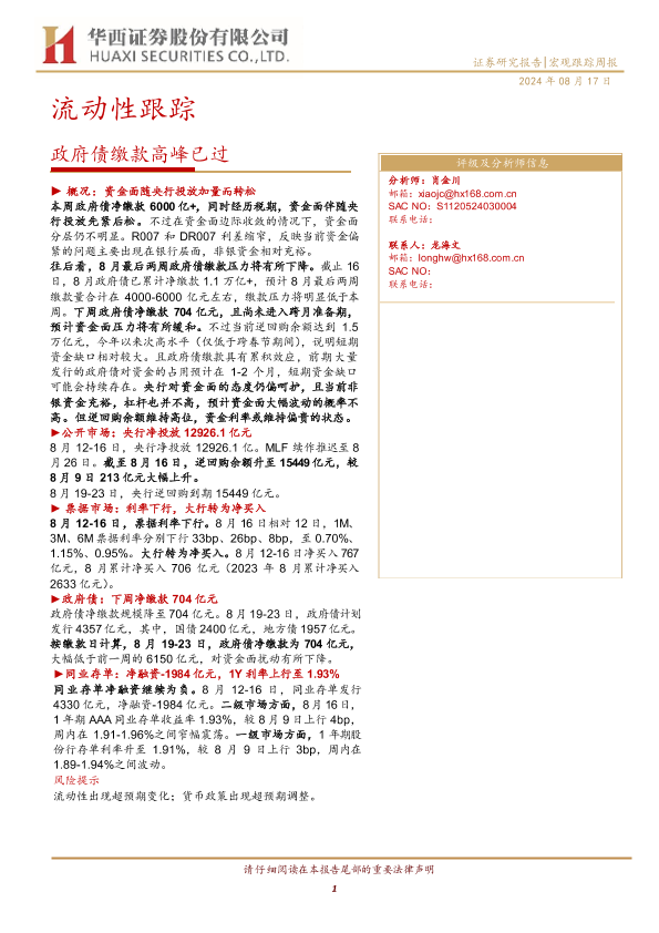 【华西证券】【20240817】流动性跟踪:政府债缴款高峰已过-20页