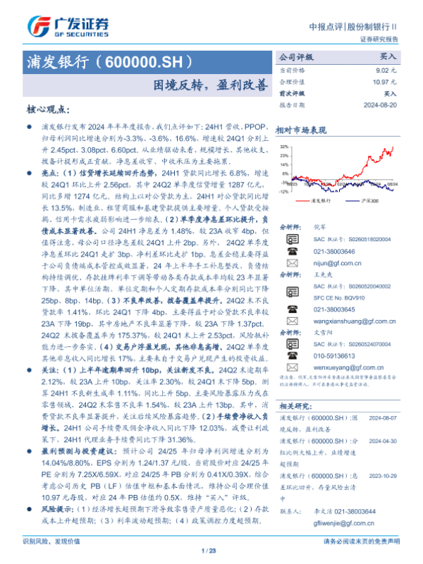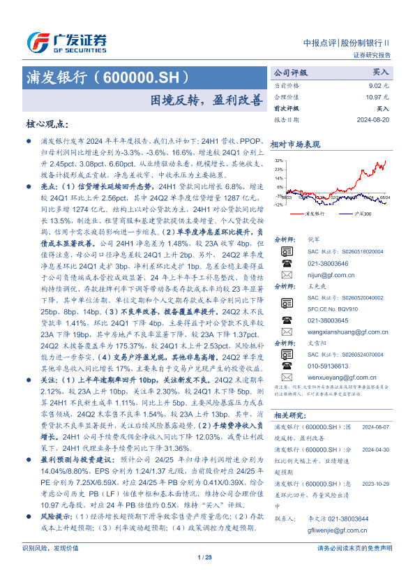 【广发证券】【20240820】浦发银行(600000)困境反转,盈利改善-23页