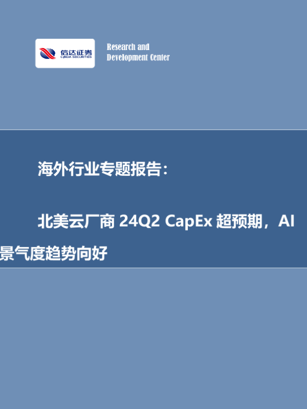 【信达证券】【20240820】海外行业专题报告:北美云厂商24Q2+CapEx超预期,AI景气度趋势向好-13页