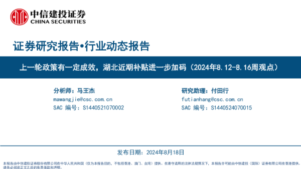 【中信建投证券】【20240818】白色家电行业:上一轮政策有一定成效,湖北近期补贴进一步加码-24页