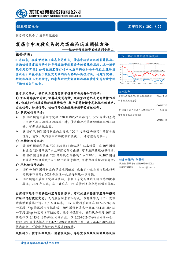 【东北证券】【20240822】短趋势债券投资策略系列专题二:震荡市中波段交易的均线西格玛及阈值方法-25页