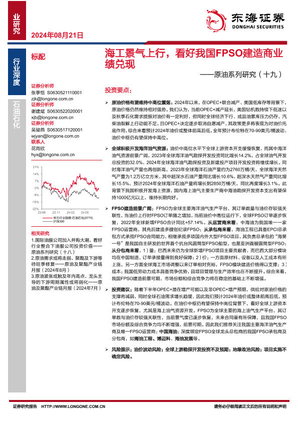 【东海证券】【20240821】海工景气上行,看好我国FPSO建造商业绩兑现——原油系列研究(十九)-21页