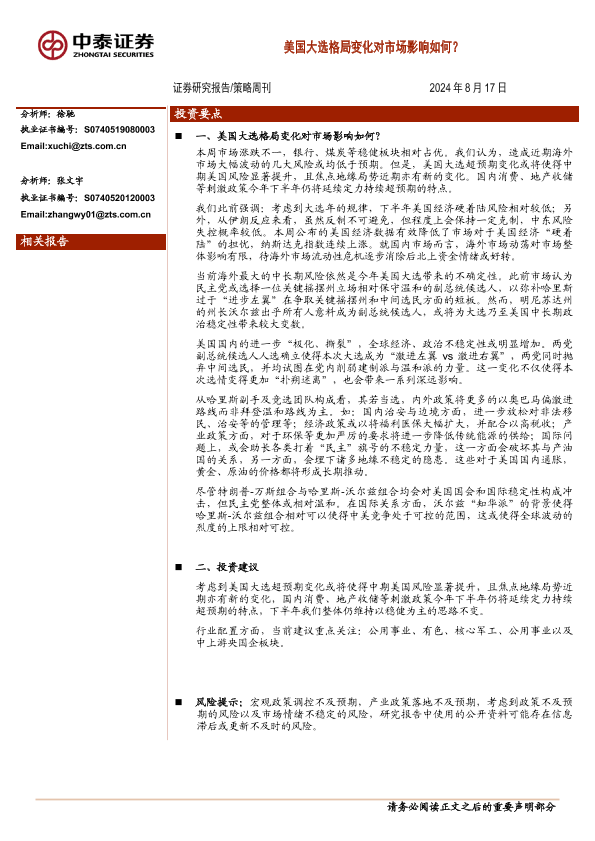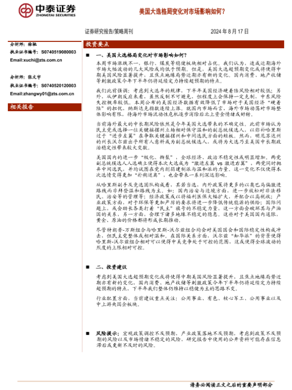 【中泰证券】【20240817】美国大选格局变化对市场影响如何?-10页