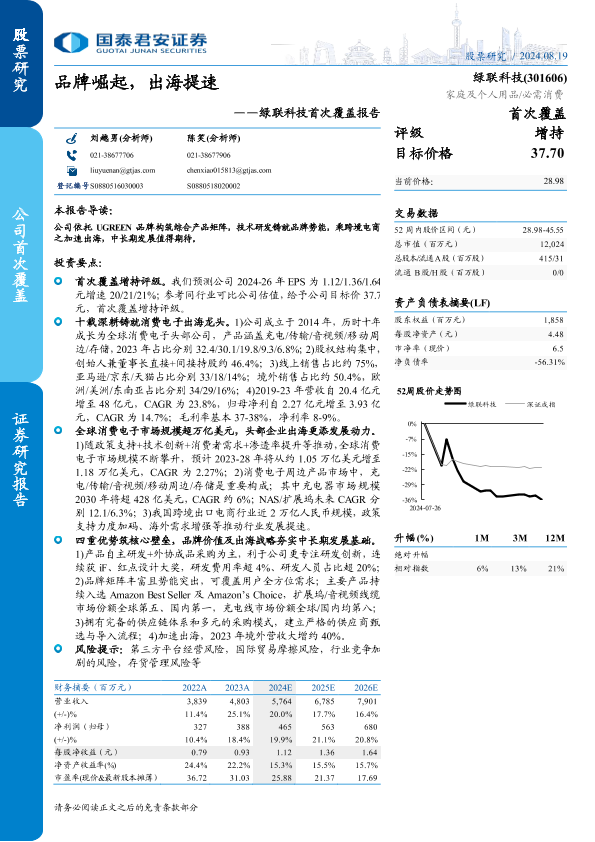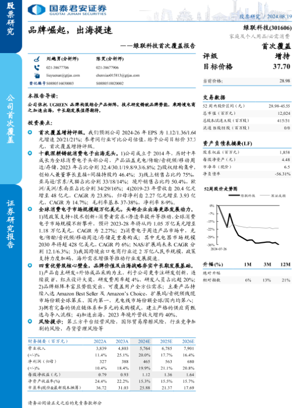 【国泰君安证券】【20240819】绿联科技(301606)首次覆盖报告:品牌崛起,出海提速-49页