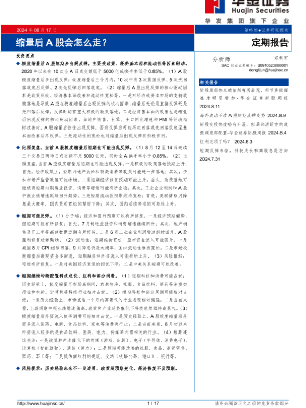 【华金证券】【20240817】缩量后A股会怎么走?-17页