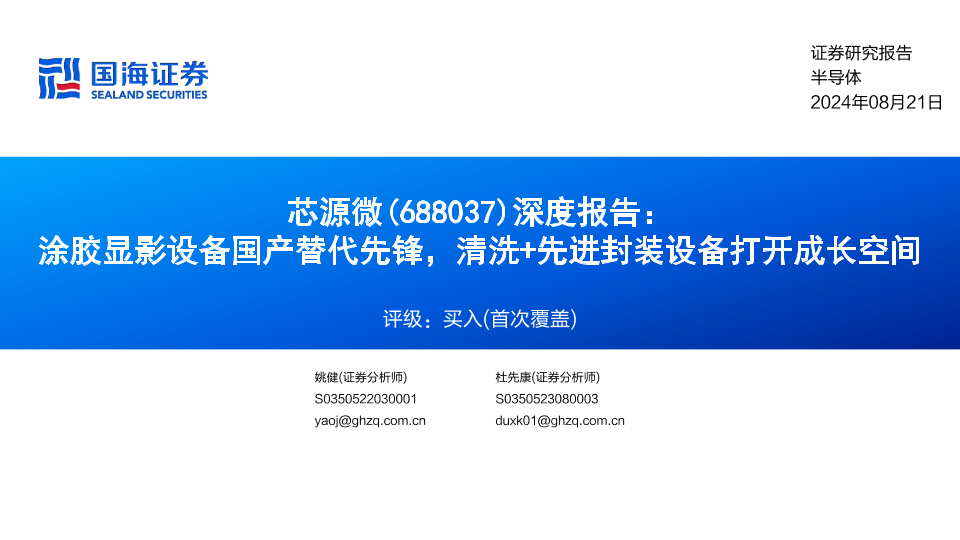 【国海证券】【20240821】芯源微(688037)深度报告:涂胶显影设备国产替代先锋,清洗+先进封装设备打开成长空间-38页