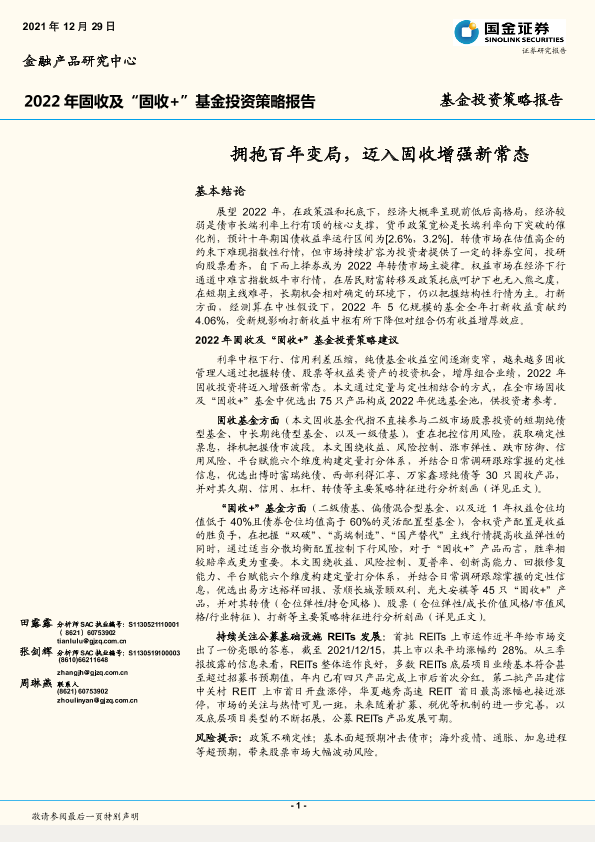 【国金证券】【20211229】2022年固收及“固收+”基金投资策略报告:拥抱百年变局,迈入固收增强新常态-26页