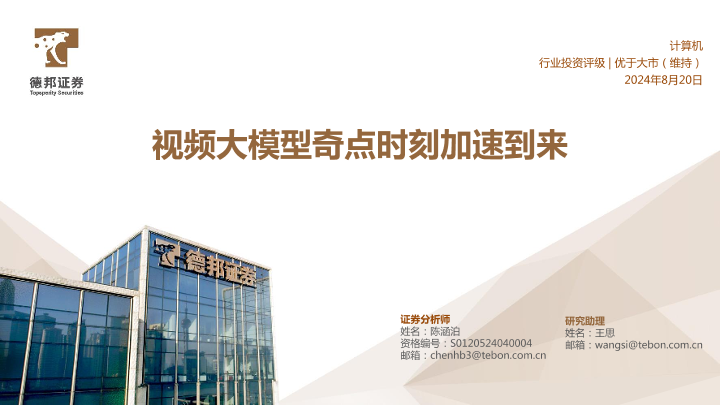 【德邦证券】【20240820】计算机行业专题:视频大模型奇点时刻加速到来-26页