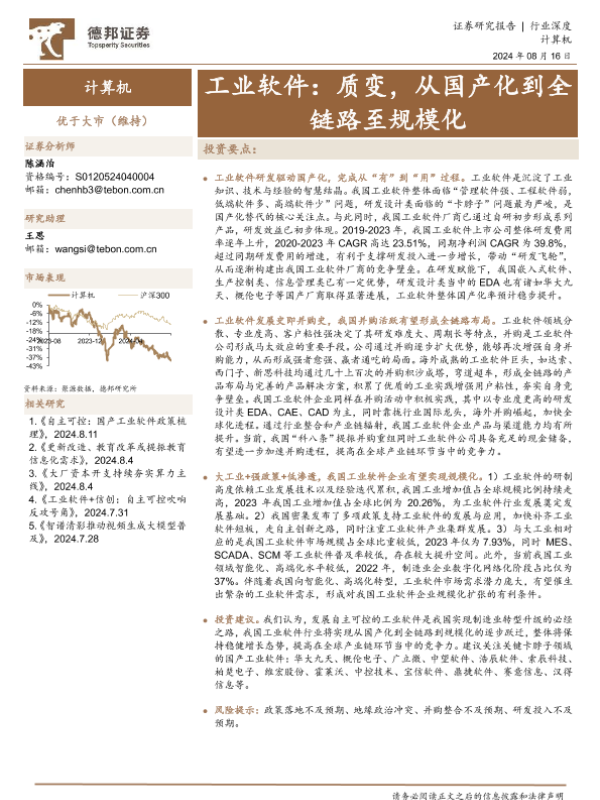 【德邦证券】【20240816】计算机行业深度-工业软件:质变,从国产化到全链路至规模化-24页