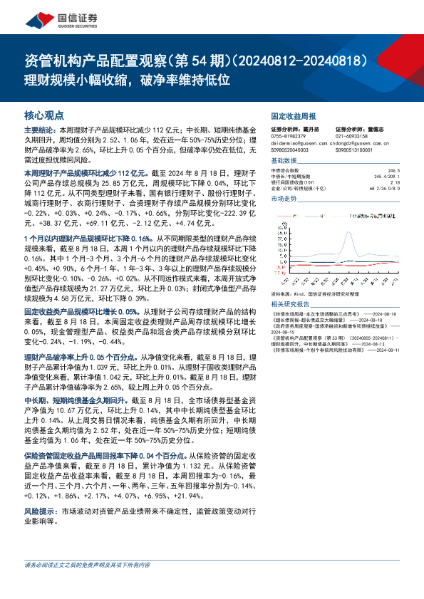 【国信证券】【20240820】资管机构产品配置观察(第54期):理财规模小幅收缩,破净率维持低位-14页