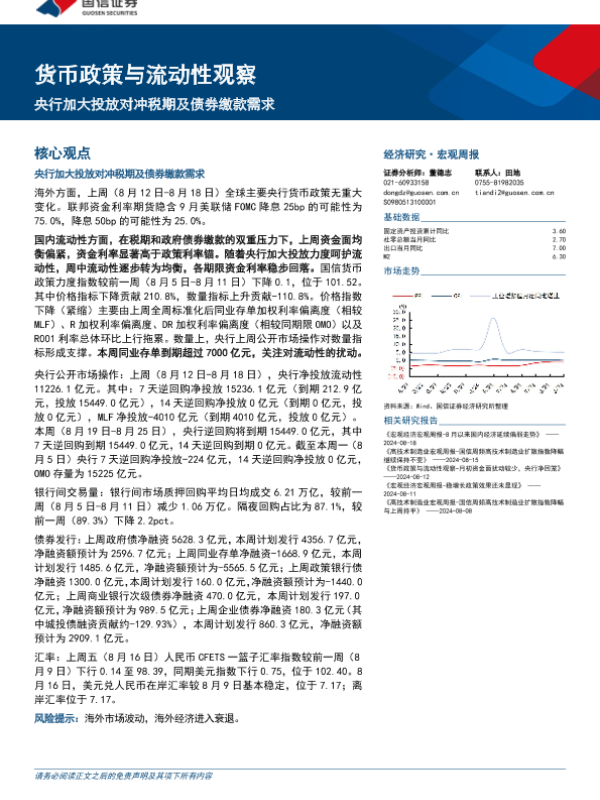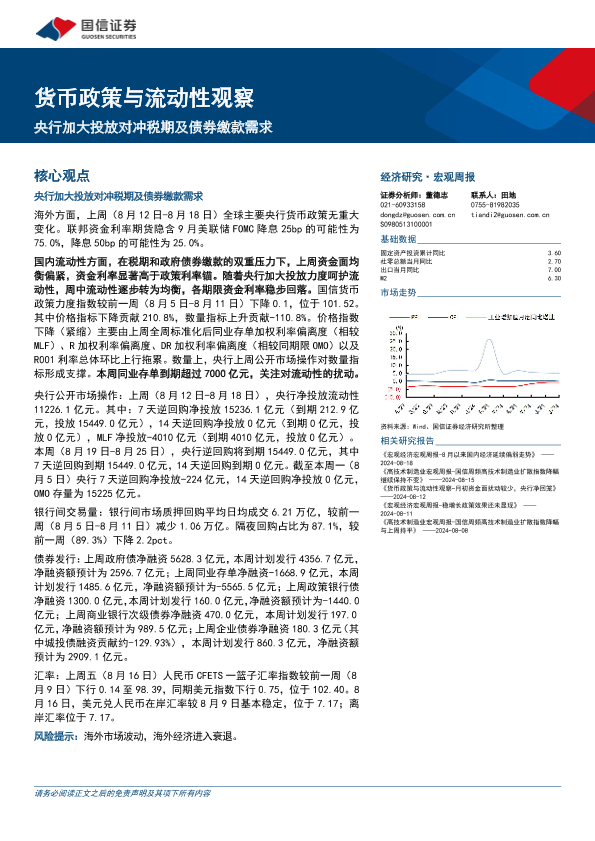 【国信证券】【20240819】货币政策与流动性观察:央行加大投放对冲税期及债券缴款需求-14页