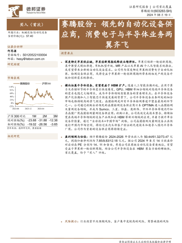 【德邦证券】【20240819】赛腾股份(603283)领先的自动化设备供应商,消费电子与半导体业务两翼齐飞-22页