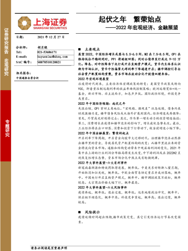 【上海证券】【20211227】2022年宏观经济、金融展望:起伏之年繁荣始点-33页