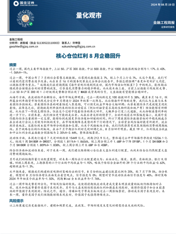 【国金证券】【20240819】量化观市:核心仓位红利8月企稳回升-14页