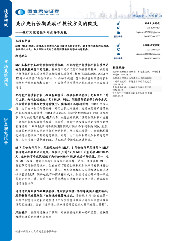 【国泰君安证券】【20240820】银行间流动性和同业存单周报:关注央行长期流动性投放方式的改变-10页