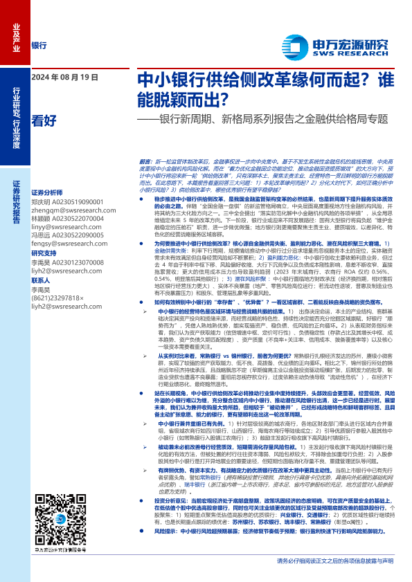 【申万宏源】【20240819】银行业新周期、新格局系列报告之金融供给格局专题:中小银行供给侧改革缘何而起?谁能脱颖而出?-30页