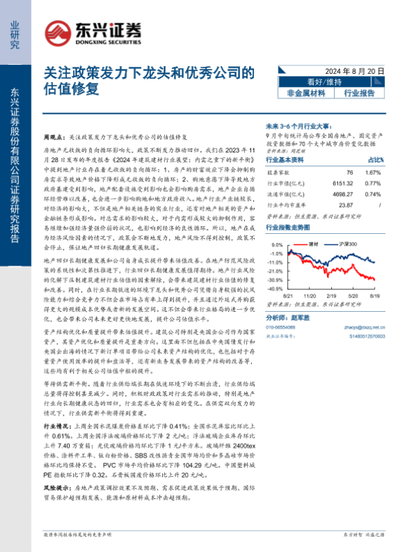 【东兴证券】【20240820】非金属材料行业报告:关注政策发力下龙头和优秀公司的估值修复-12页