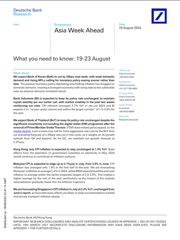 【Deutsche Bank】【20240819】Deutsche Bank-Asia Week Ahead What you need to know 19-23 August-11页